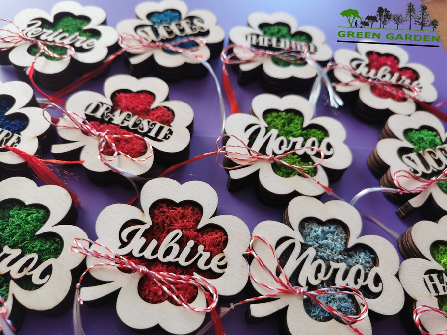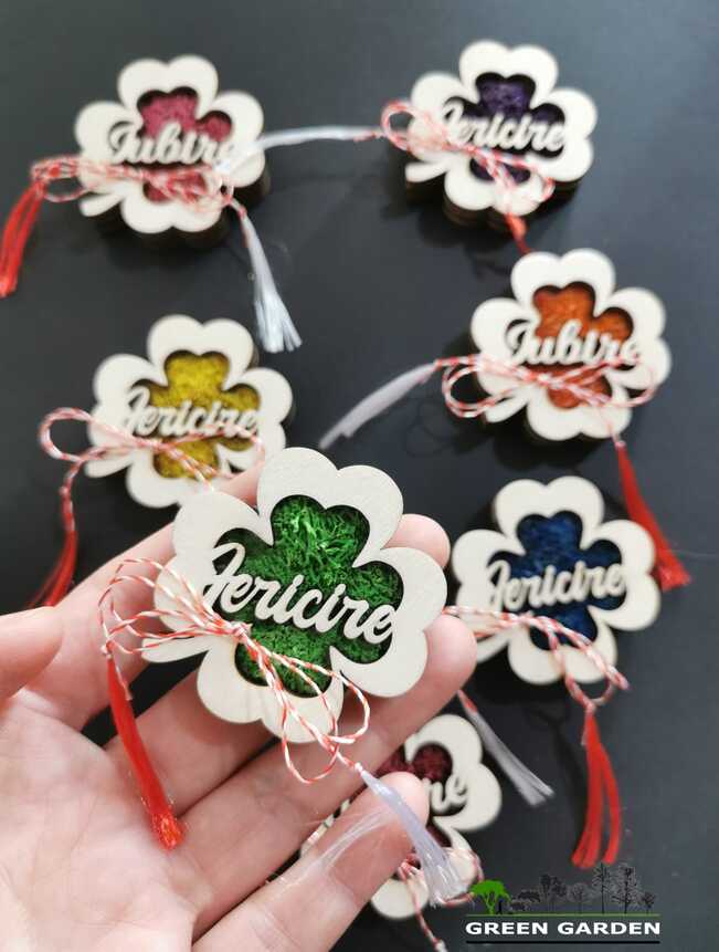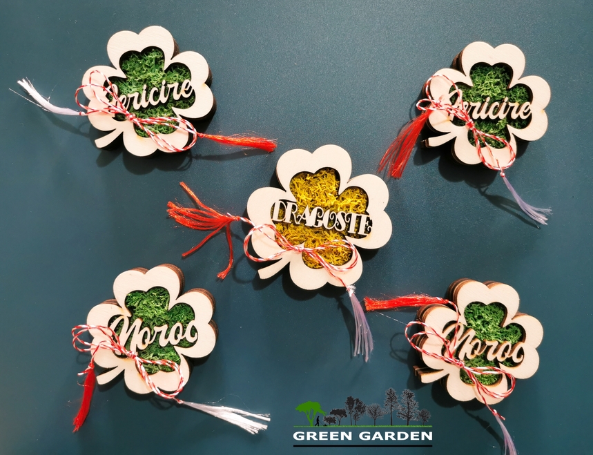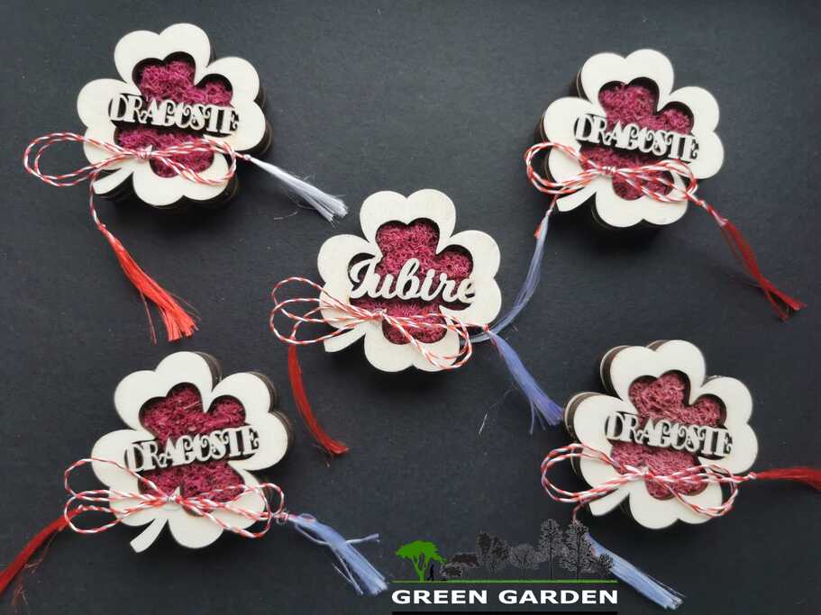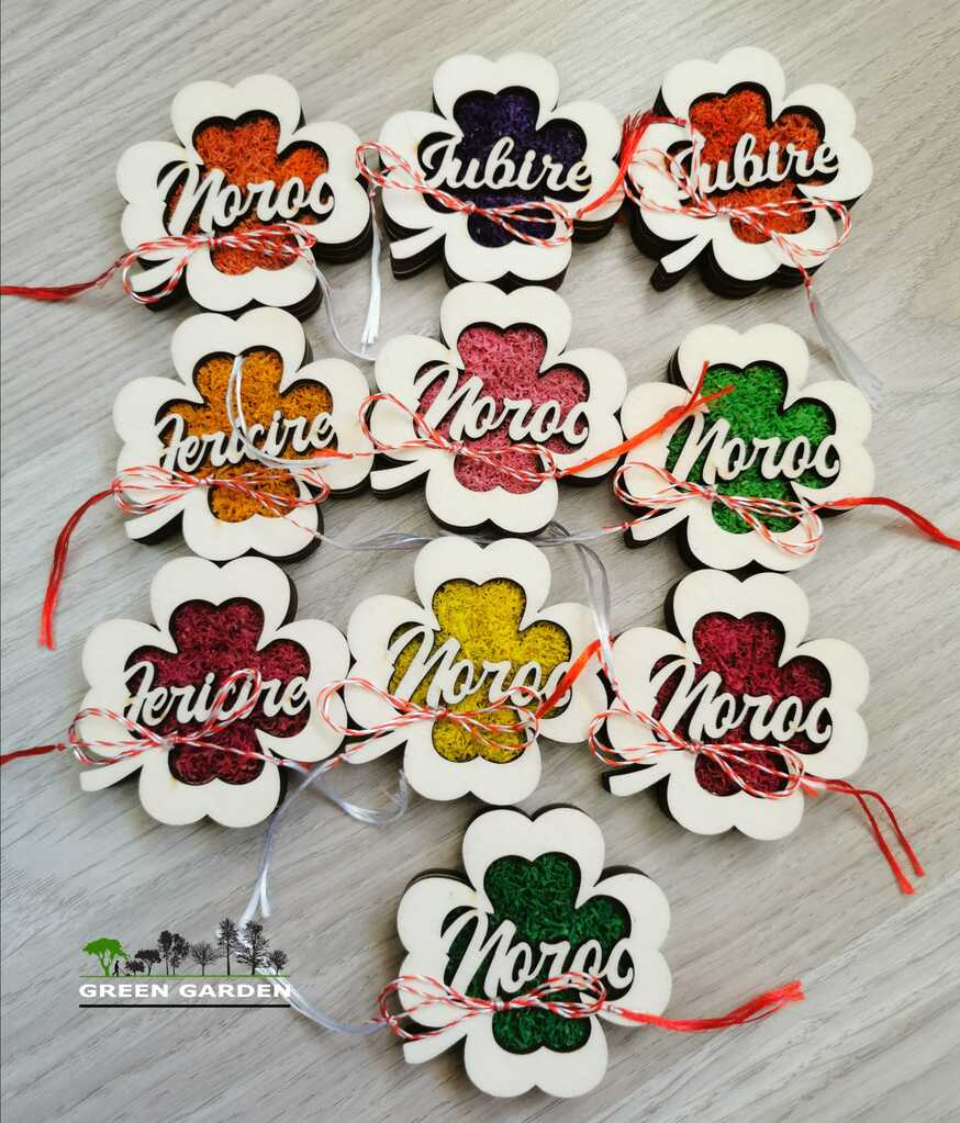 Martisoare trifoi magnetice personalizate cu mesaj cu licheni stabilizati