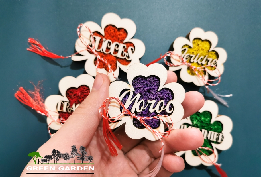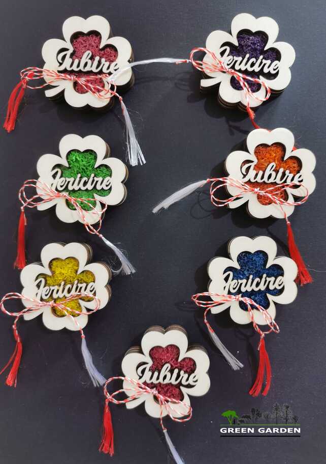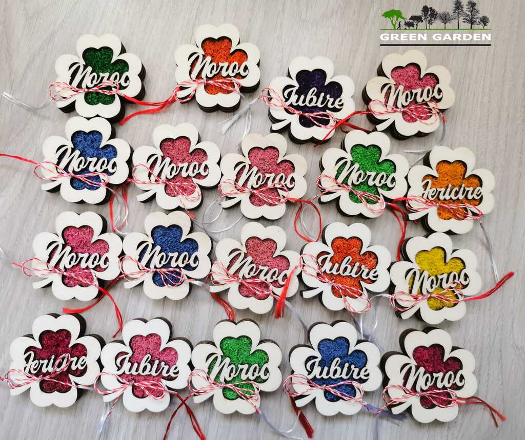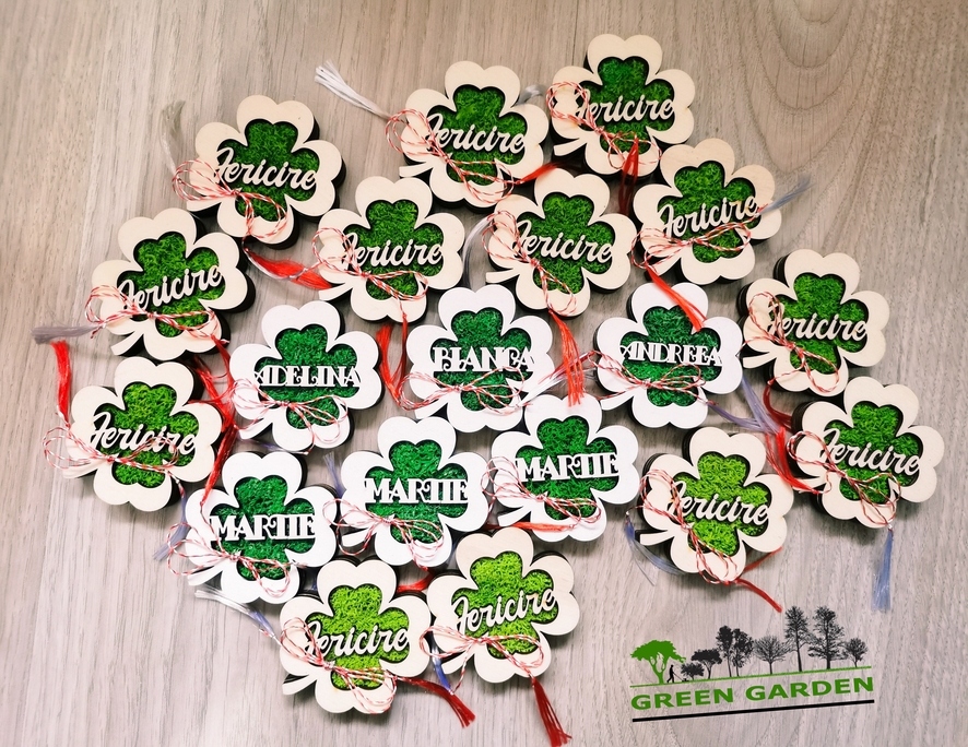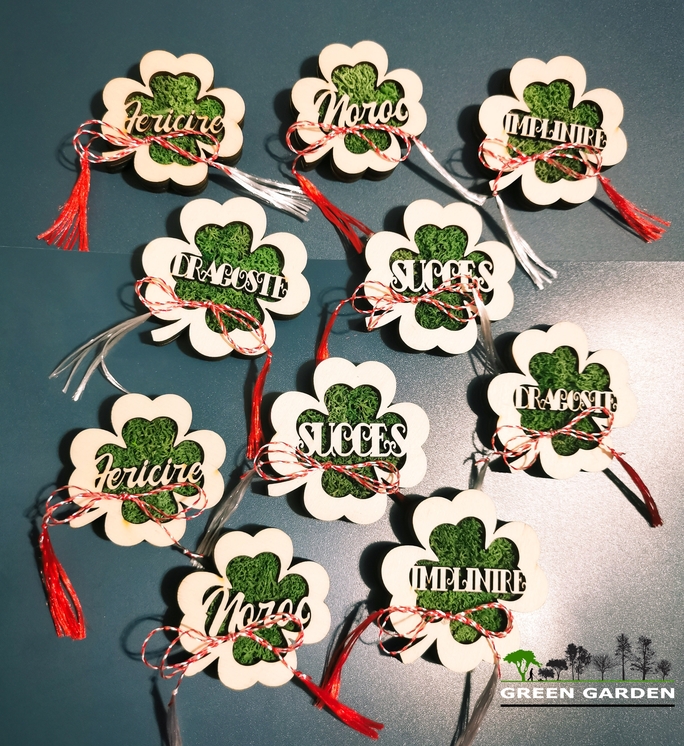 Martisoare trifoi magnetice personalizate cu mesaj cu licheni stabilizati
